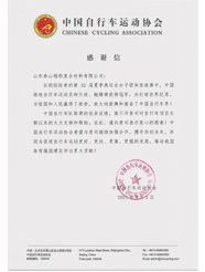 中國自行車運動協會感謝信