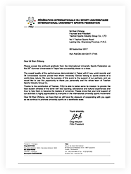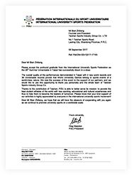 國際大學生體育聯合會主席致感謝信