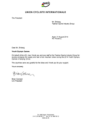 國際自行車聯盟感謝信(英文)