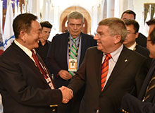 中國自行車運動協會主席崔大林向國際奧委會主席巴赫介紹 星空·綜合瑞豹自行車